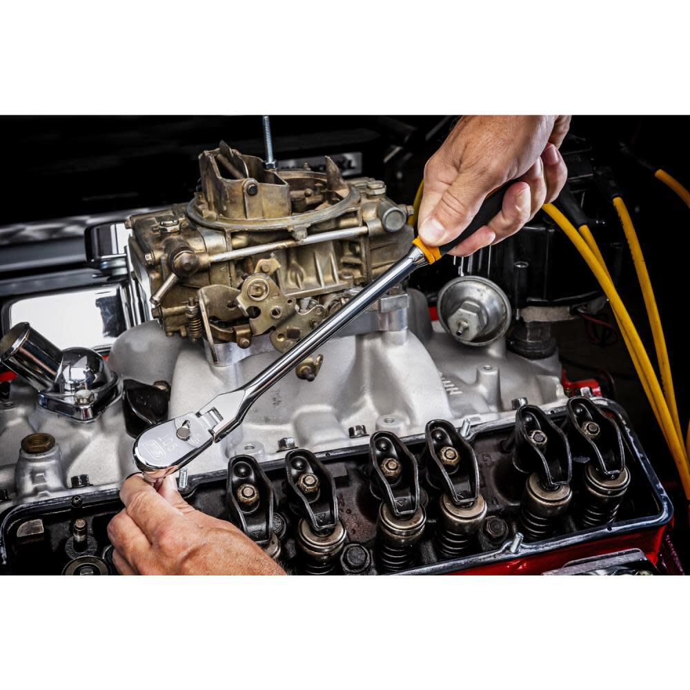 The GEARWRENCH 90-tooth ratchets have a 4∞ swing arc and low-profile head for easier access to hard-to-turn fasteners.