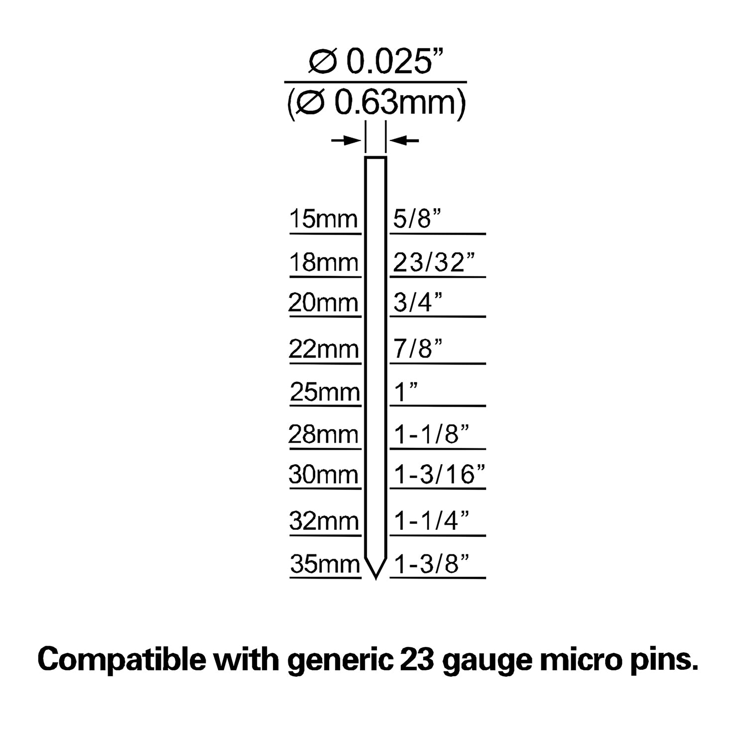 Compatible with 23-Gauge headless pin nails from 5/8 in to 1-3/8 in