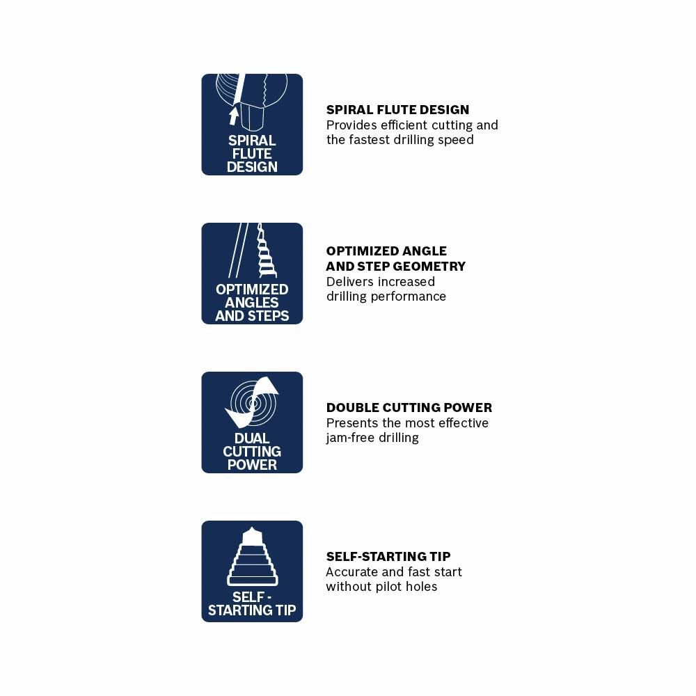 - Swiss made – Swiss engineered and manufactured step bits offering premium quality and performance
