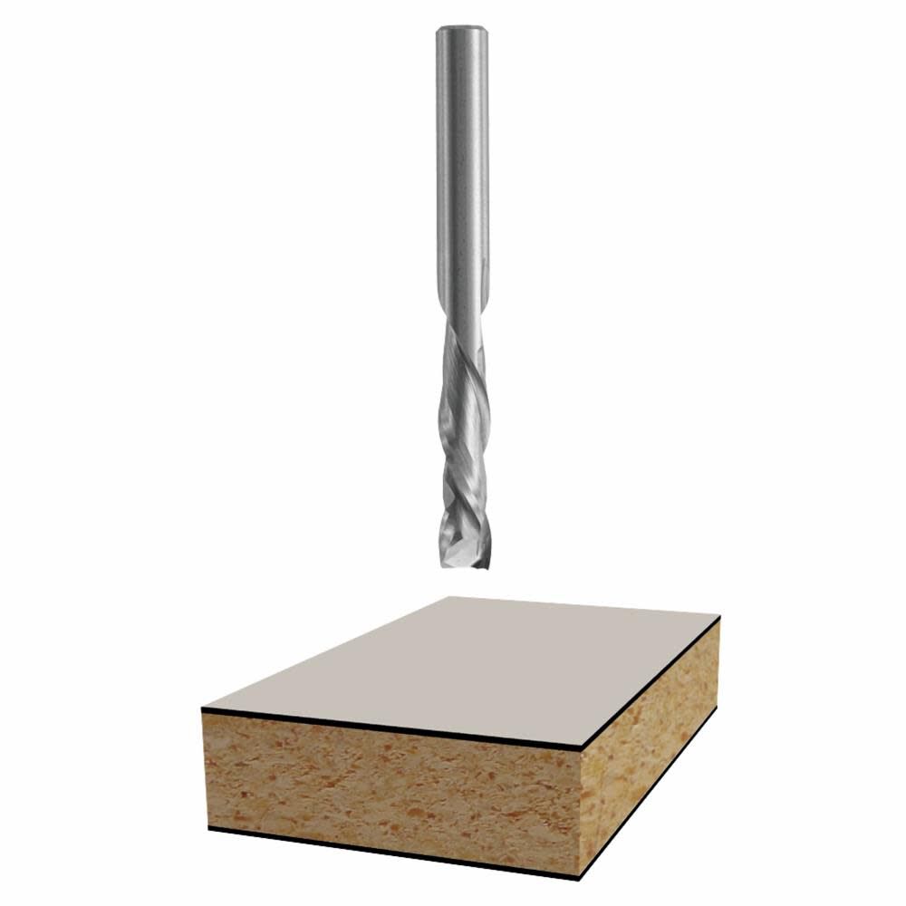 Compression spiral bits are ideal for CNC applications requiring high feed rates and a clean finish.