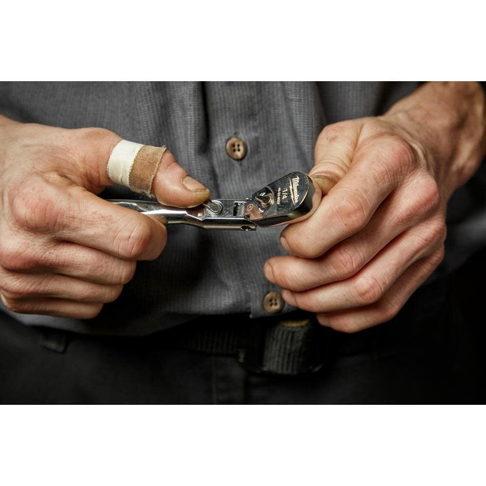 The MILWAUKEEÆ 1/4Äù Drive 6Äù Flex Head Ratchet with a 4Å∞ arc swing provides better access and is more adaptable to working in spaces with different angles.