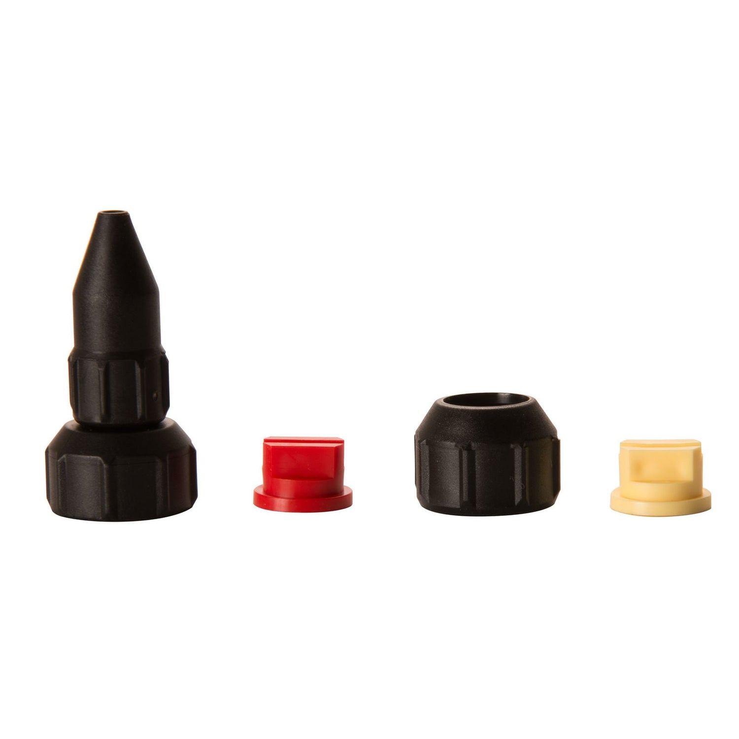 Includes a 3in1 nozzle with three settings fan spray for covering large areas like decks and siding stream spray for spot treating weeds and pests and cone spray for watering or fertilizing flowers and vegetables