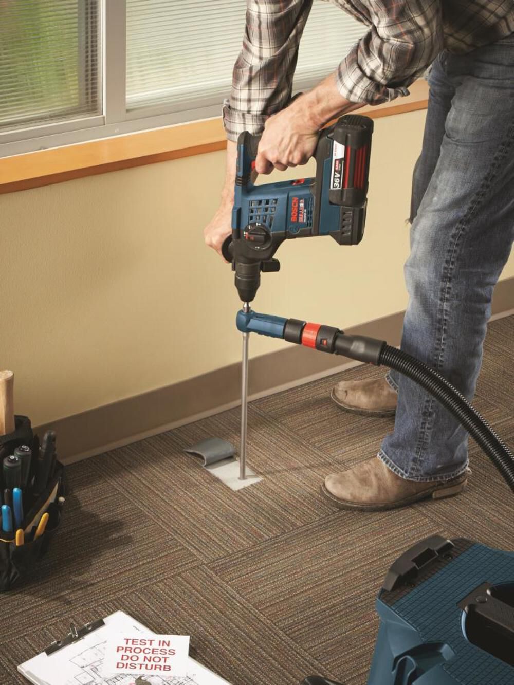 - Hollow drill bit – connects to a vacuum system to deliver up to 50% time savings versus the conventional drill-blow-brush-blow anchor-installation method