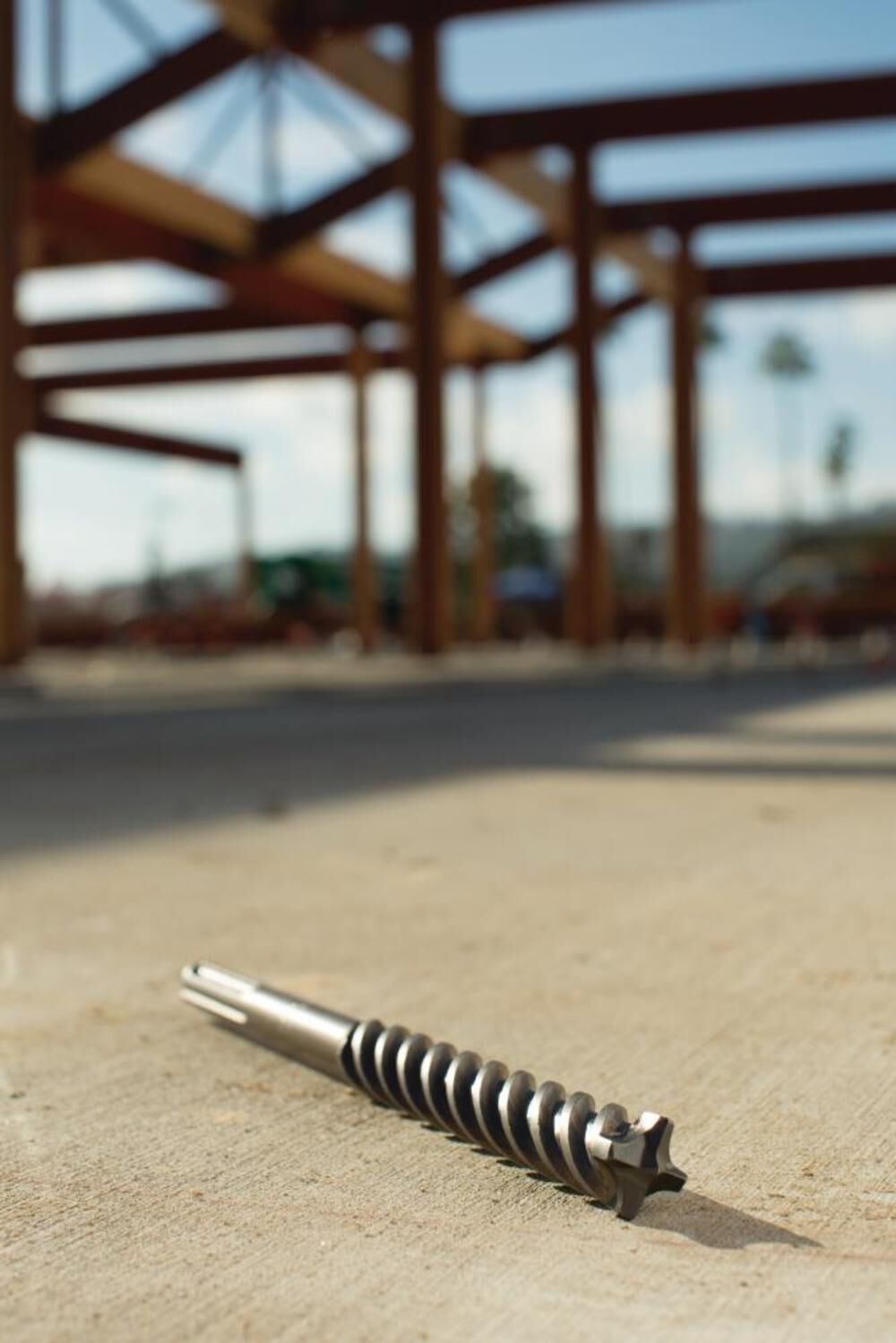 - Long-lasting SDS-max® drill bit design – manufactured with 100% carbide head and four-cutter design, making it the long-lasting bit for drilling in reinforced concrete and hard aggregate