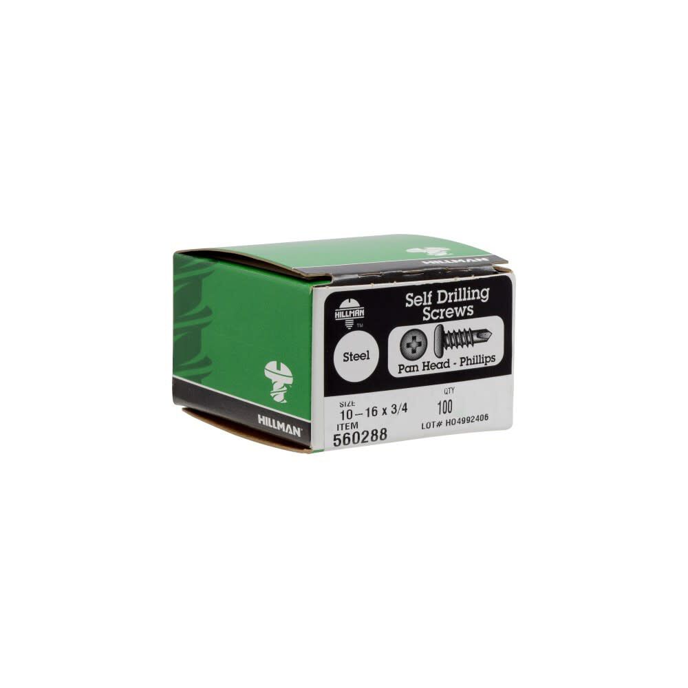 Hillman #10-16 x 3/4in Zinc Pan Phillips Self Drilling Screw 100pk