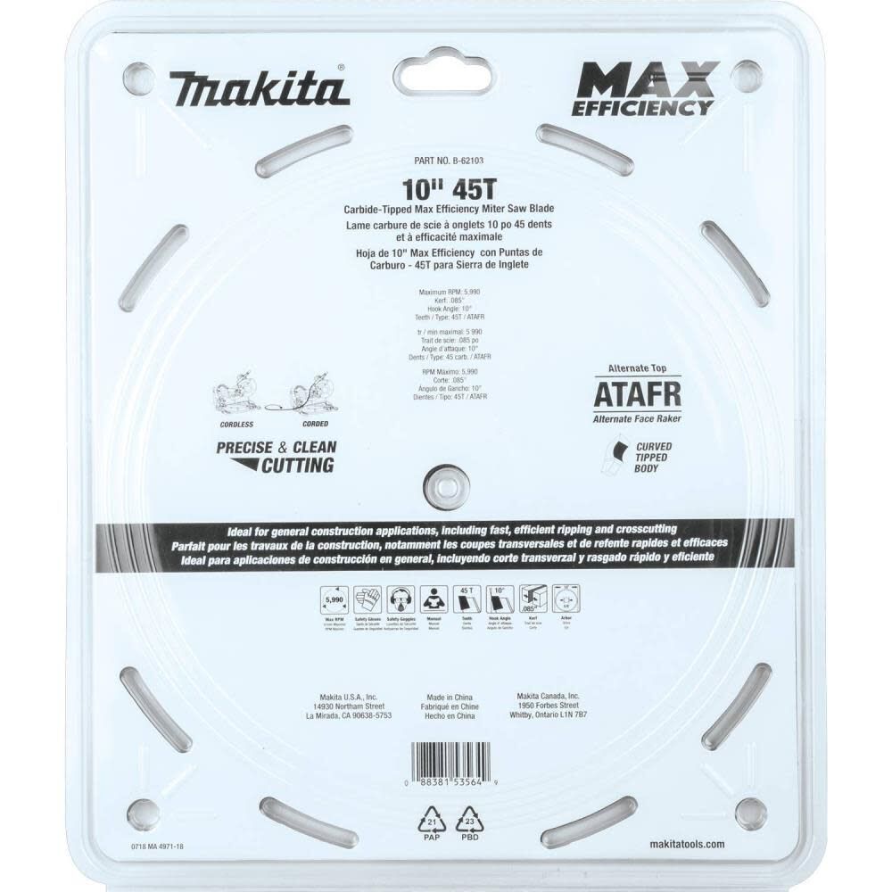 Makita 10in 45T Carbide-Tipped Max Efficiency Miter Saw Blade