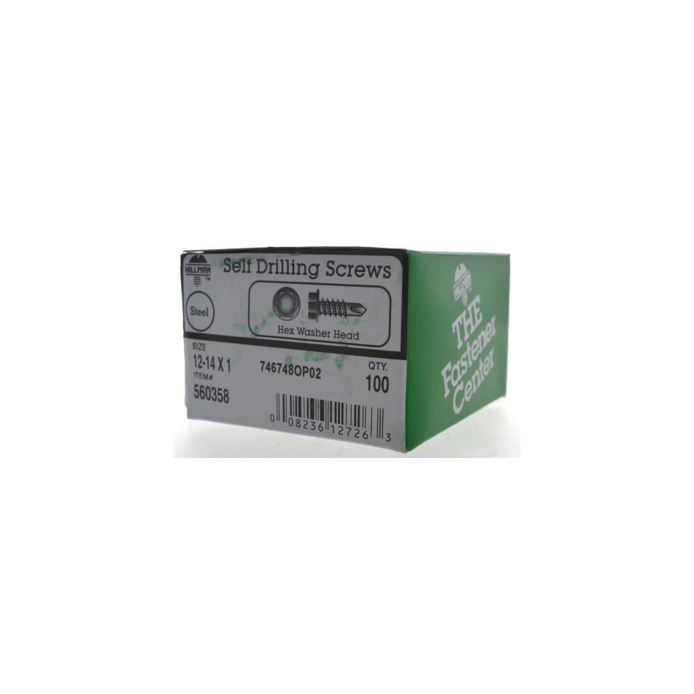 Hillman #12-14 x 1in Zinc Hex Washer Head Self Drilling Screw 100pk