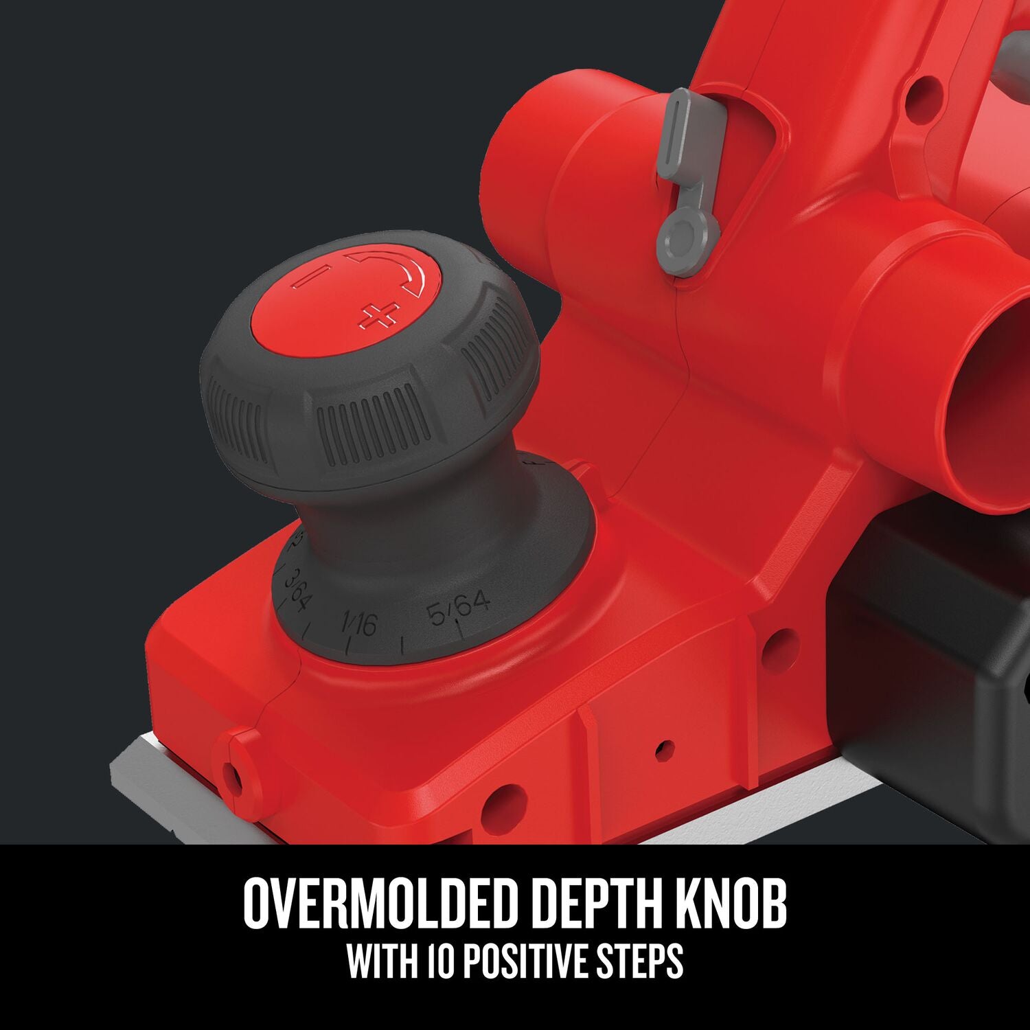 BETTER CONTROL: Overmolded depth knob with 10 positive steps allows better planer control and multiple depth settings