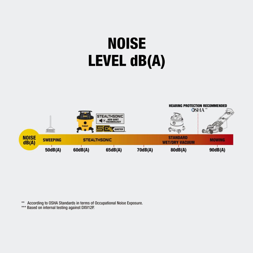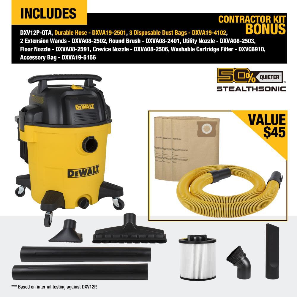 - DEWALT 12 Gallon* Stealth sonic poly wet/dry vacuum has a powerful, yet quiet motor