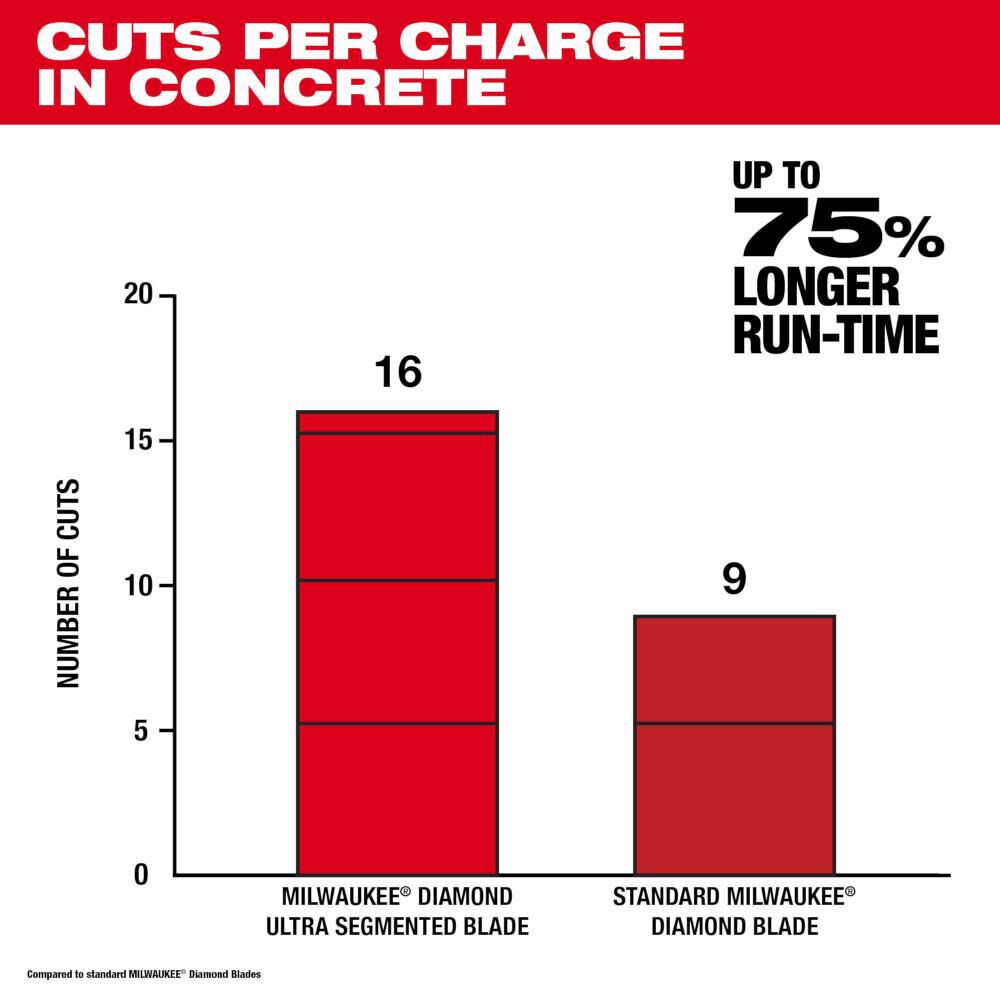 The MILWAUKEEÆ 12" Diamond Ultra Segmented Blades are engineered to deliver fastest cutting speeds and longer run time to maximize productivity.