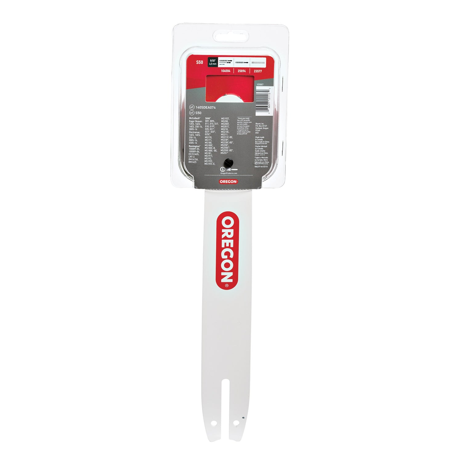 Includes 14" bar with A074 Motor Mount and S50 Saw Chain
