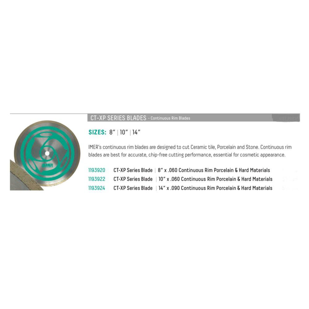 Continuous rim blades are designed to cut ceramic tile, porcelain and stone.