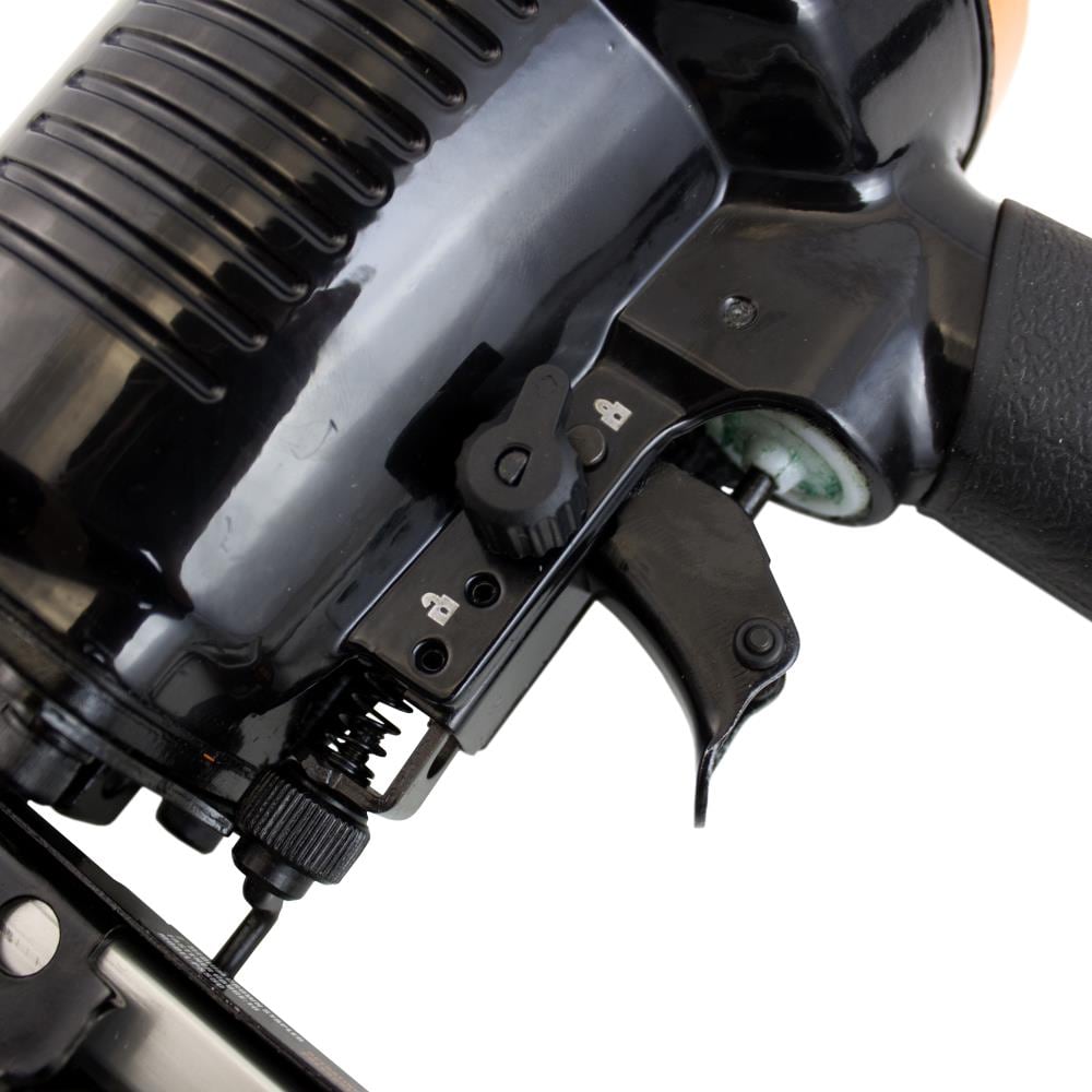 A quick jam release allows for easy access clearing in the event of jammed fasteners, and you can easily adjust the driving depth of the staples by simply turning a wheel near the trigger.