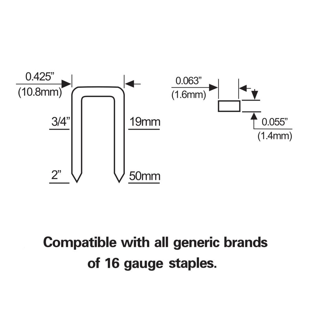 Compatible with 16-Gauge glue collated 7/16 in medium crown staples from 3/4 in to 2 in L (freeman model number CS16-15, CS16-2, CS16-34)
