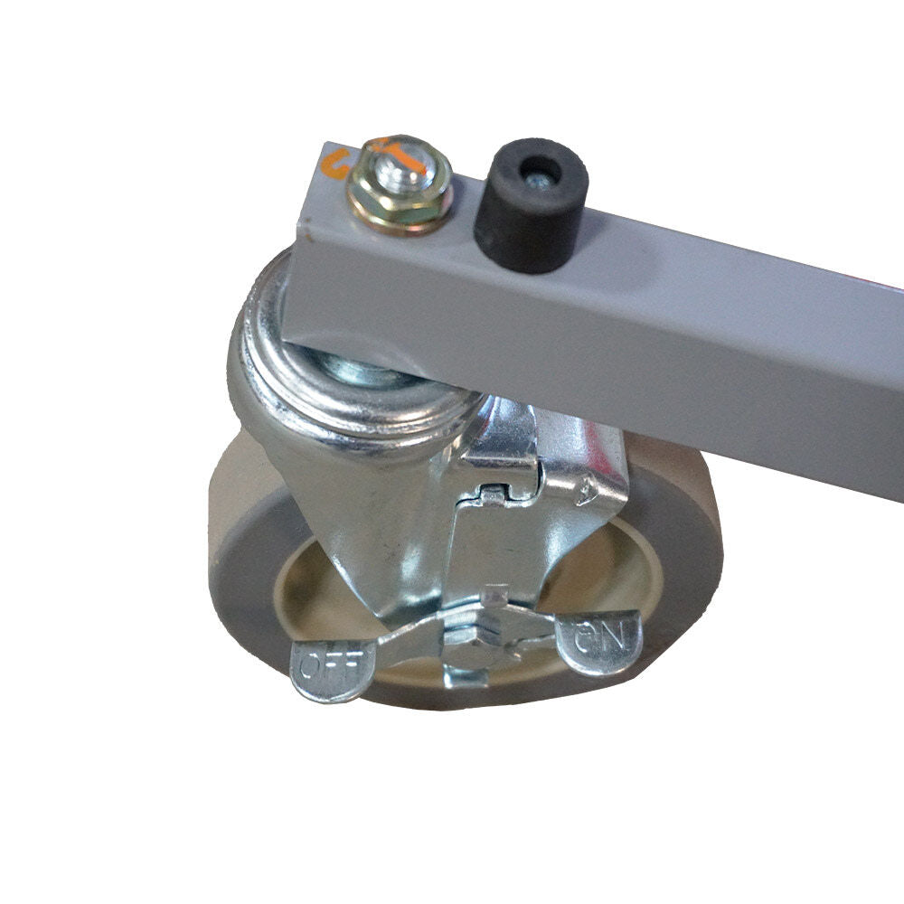 Legs fold out from the base, and the lock mechanism keeps each leg out for use (or up for storage).