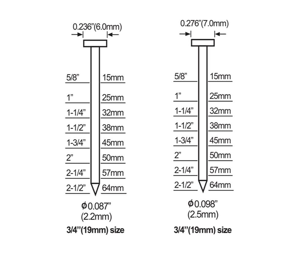 Compatible with 14 gauge glue collated concrete T-nails from 5/8 in to 2-1/2 in