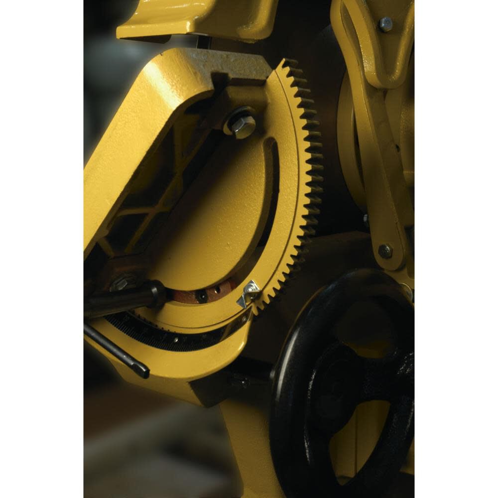It has direct drive from motor to disc for maximum efficiency, with a hand activated brake for quick stoppage of disc.