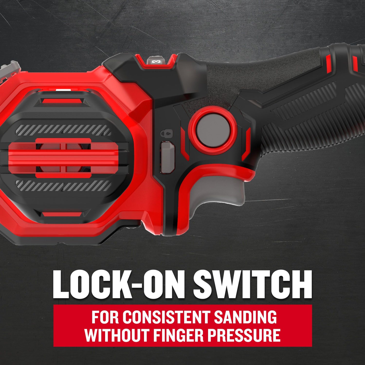 ONE-TOUCH CONTROL - Engage the lock-on switch to allow for consistent sanding speed in tight spaces without adjusting finger pressure