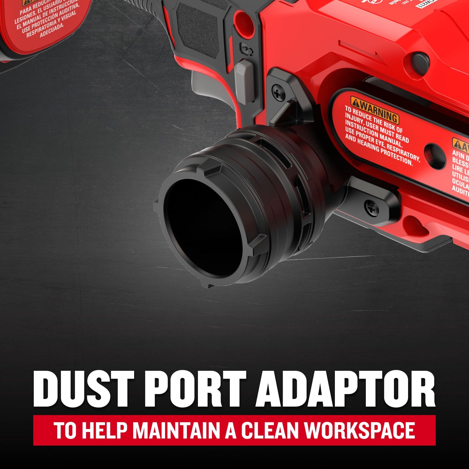 DUST CAPTURE - Help maintain a clean workspace with the dust port adaptor designed to help capture debris when used with a compatible vacuum (sold separately); Accepts vacuum hoses up to 32mm in diameter