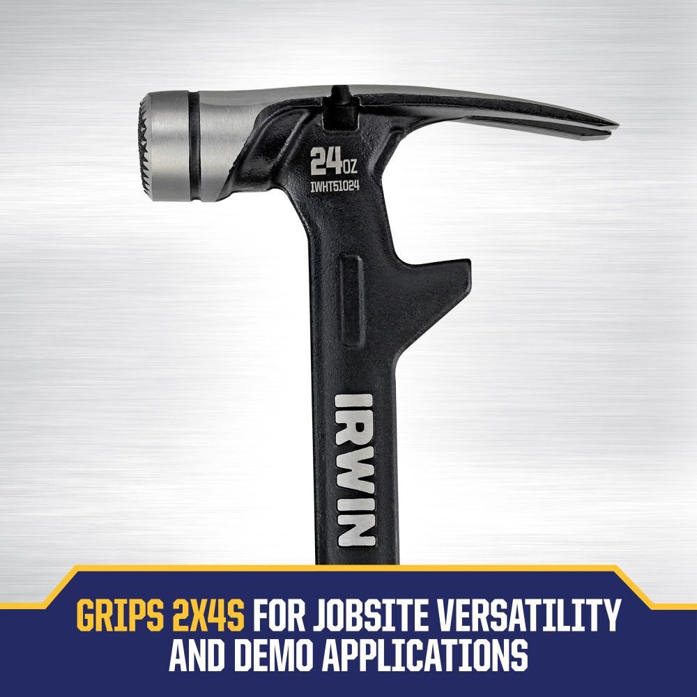 It comes with a larger strike face with demolition and breaking through drywall in mind and has a 2x4 (or 2x6) gripper for grabbing, straightening or bending boards.
