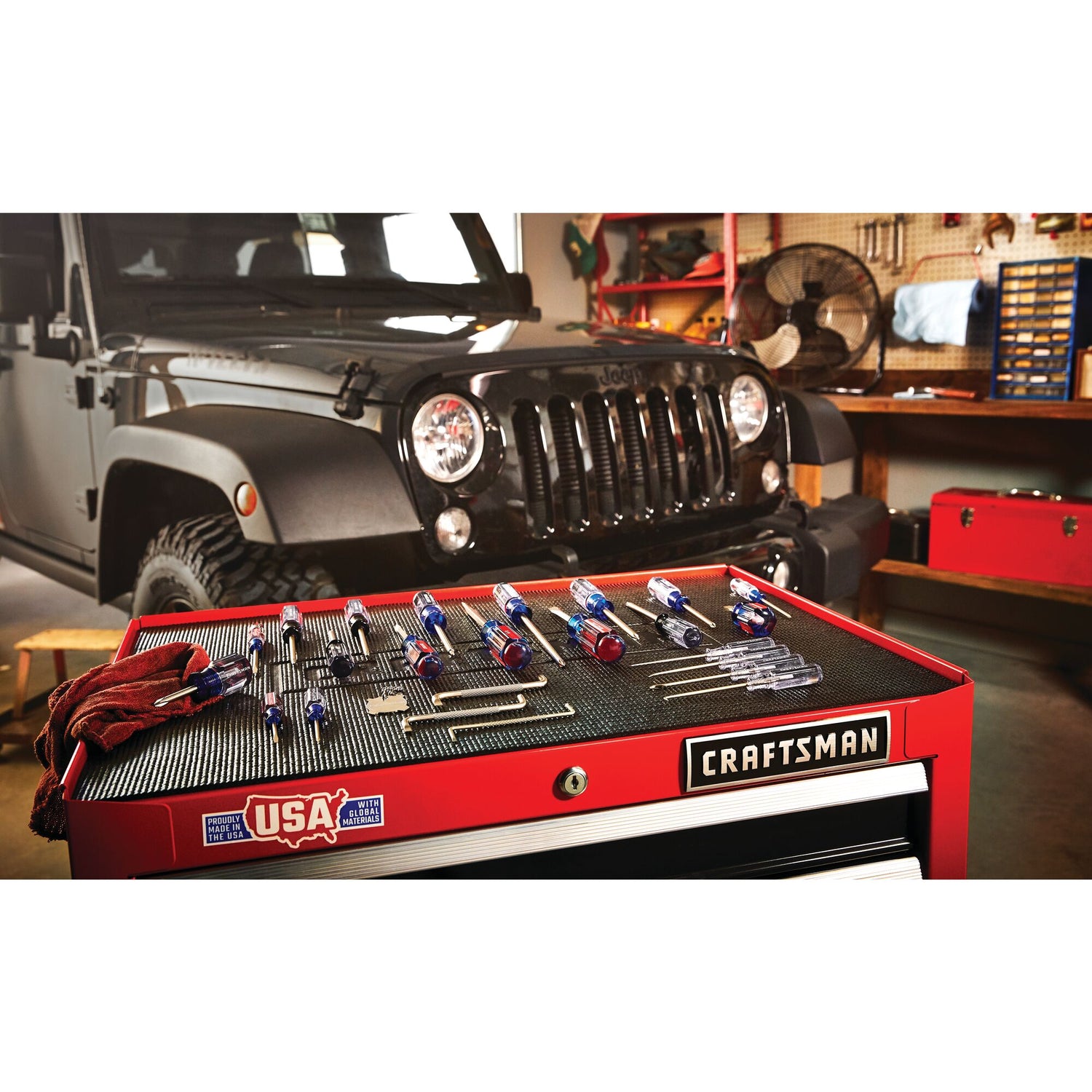 Includes (cont.): PH # 2 x 1-1/2-in, PH #2 x 4-in, PH #2 x 6-in, T10 x 3-in, T15 x 3-in, T20 x 3-in, T25 x 4-in, SQ #2 x 4-in, 4 Piece Hook and Pick Set, 3 Offsets Screwdriver, Keychain