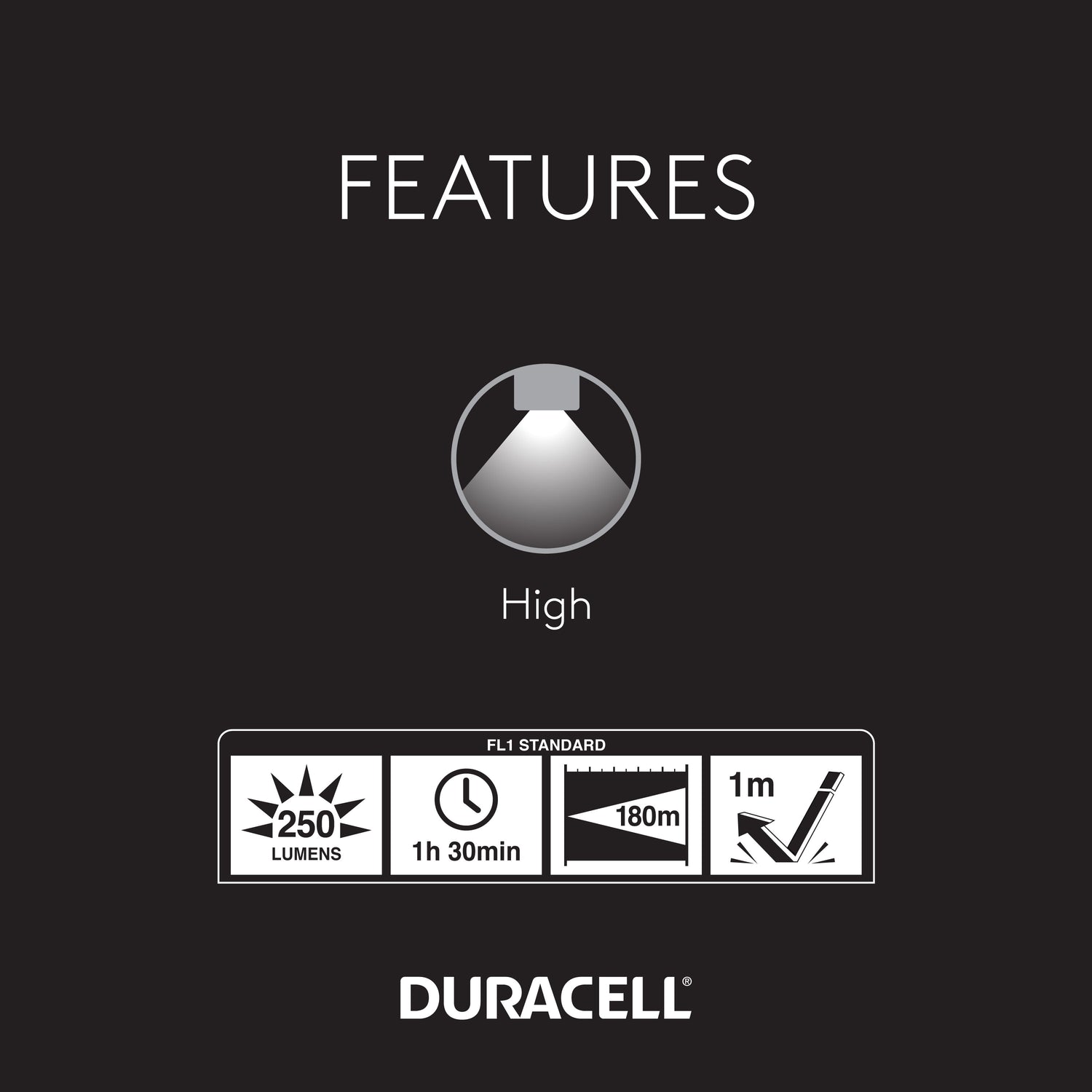VIVID ILLUMINATION: Powerful and incredibly bright 250 Lumen Duracell LED Flashlight with IPX4 water resistance to withstand even the most extreme weather conditions