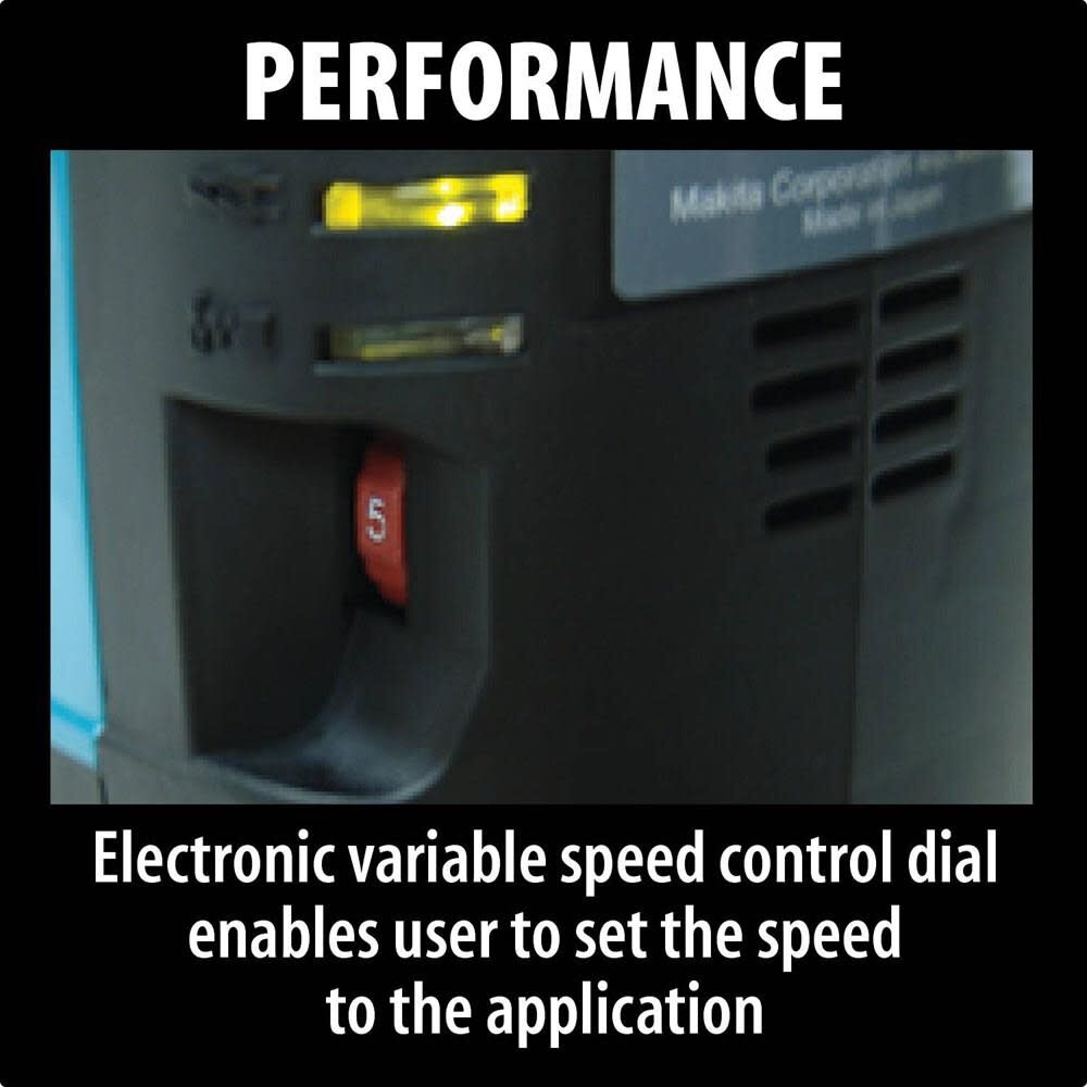 Constant speed control automatically applies additional power to the motor to maintain speed under load to complete the most challenging jobs.