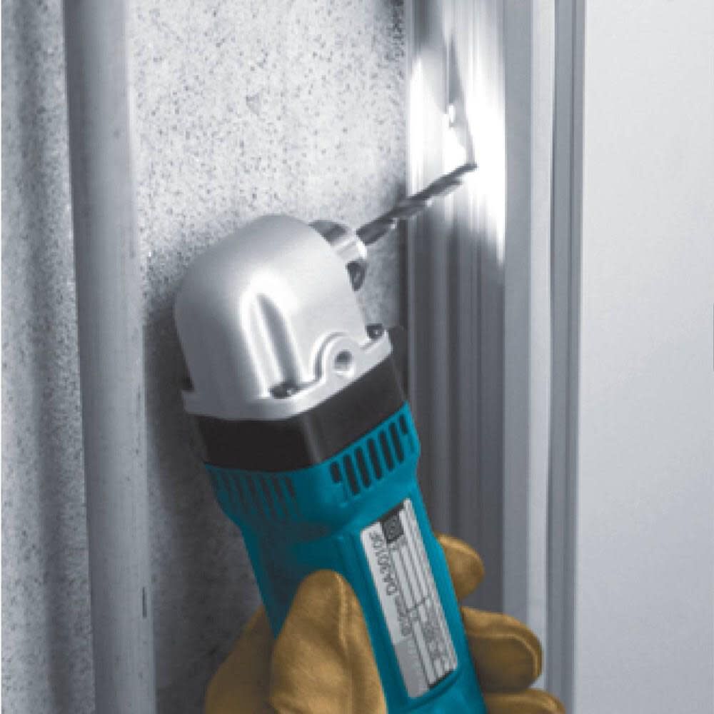 The Makita reversible 3/8 Inch angle drill has a compact and low-profile design that enables the user to work in confined spaces.