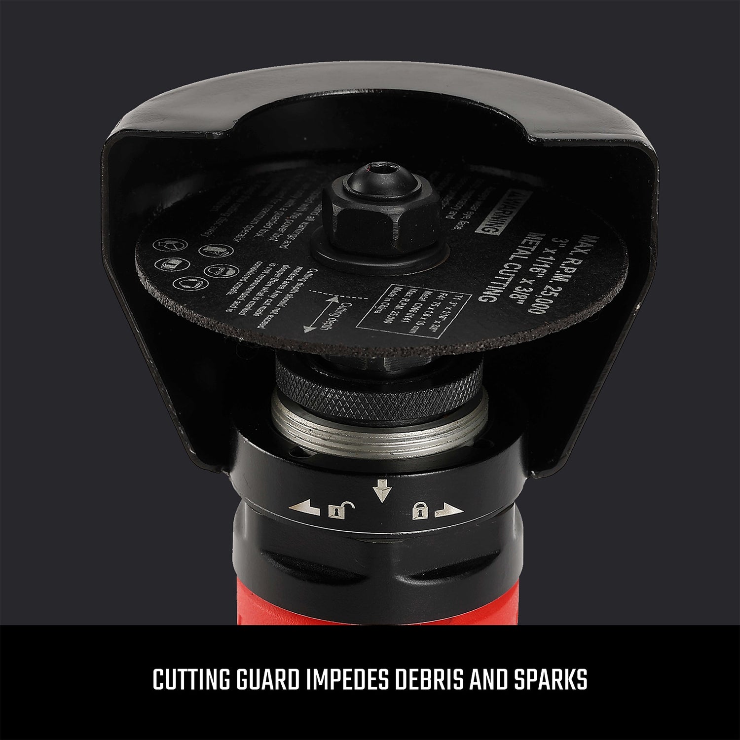 Cutting guard impedes debris and sparks