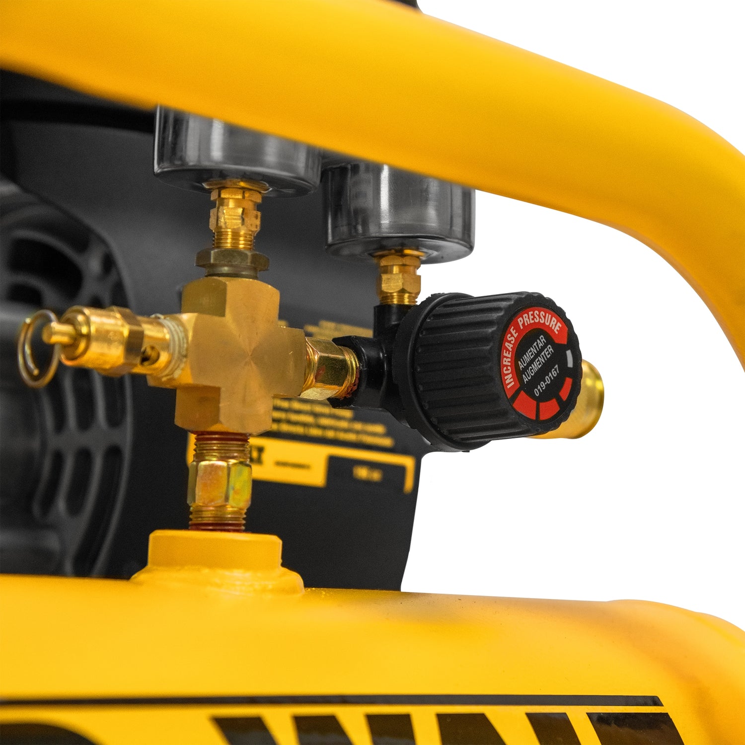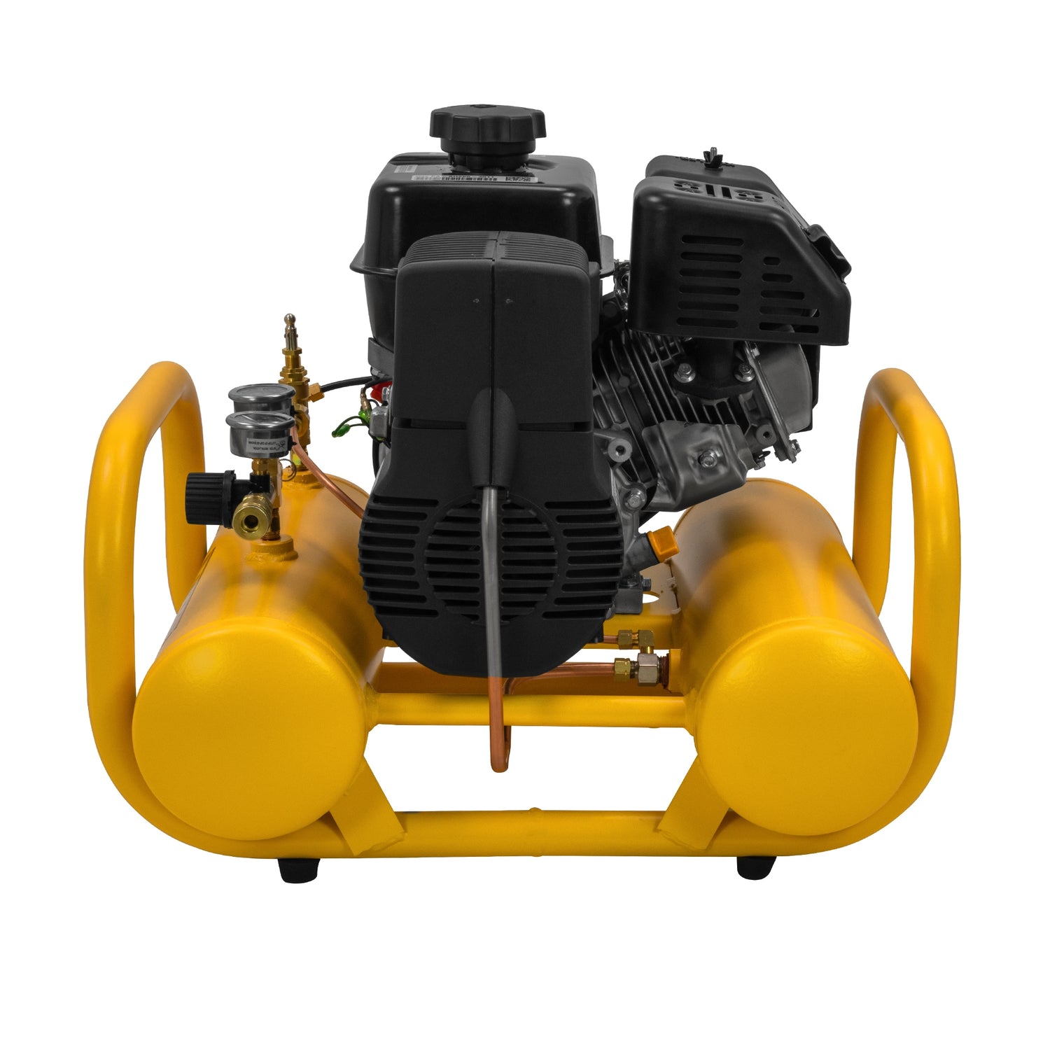 For easy moving, this “pontoon” style compressor offers two 2-gallon tanks.