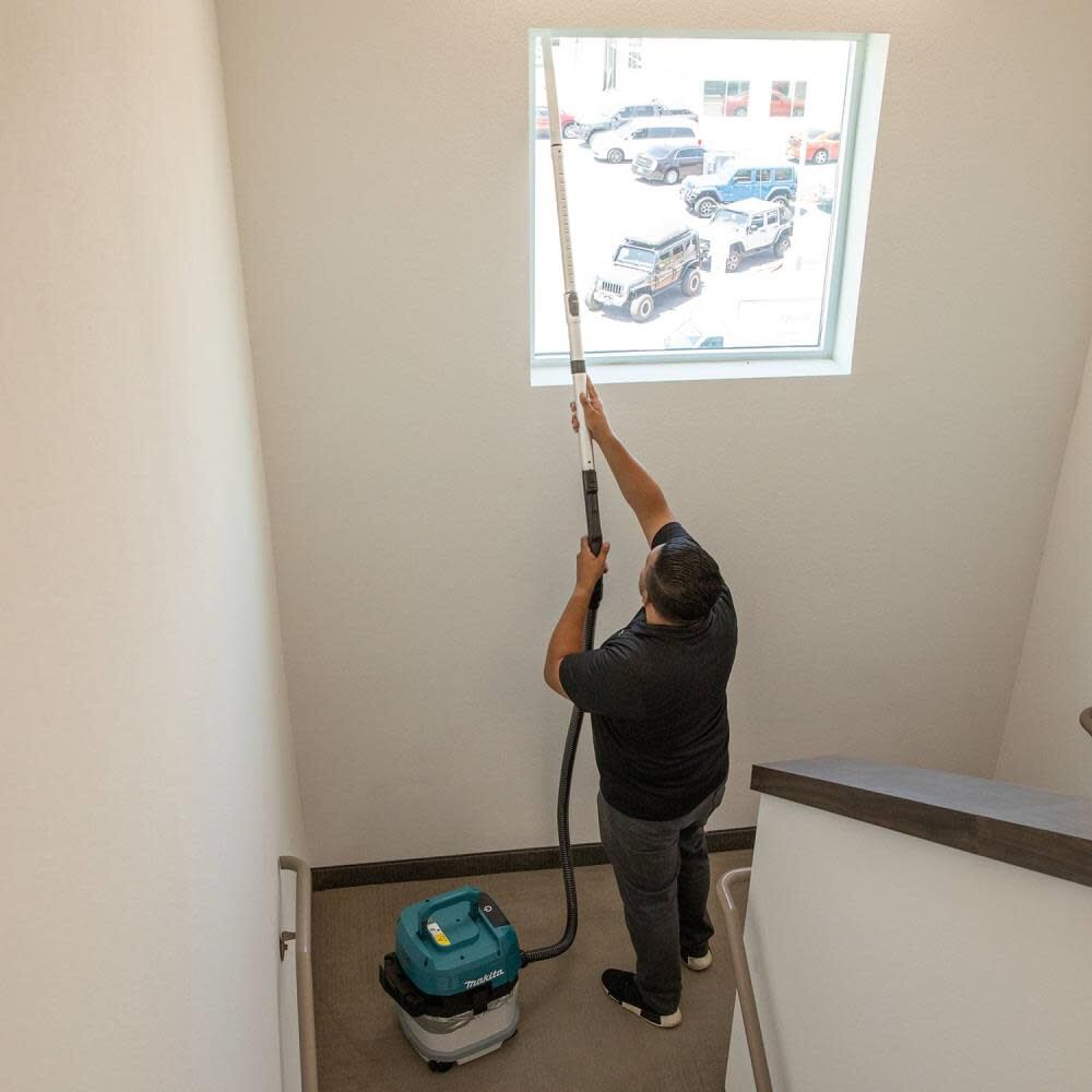 The Makita cordless 4 gallon wet/dry dust extractor/vacuum is run by brushless motor that produces an airflow of 148 cfm and strong suction power to lift water to height of 92 Inch.