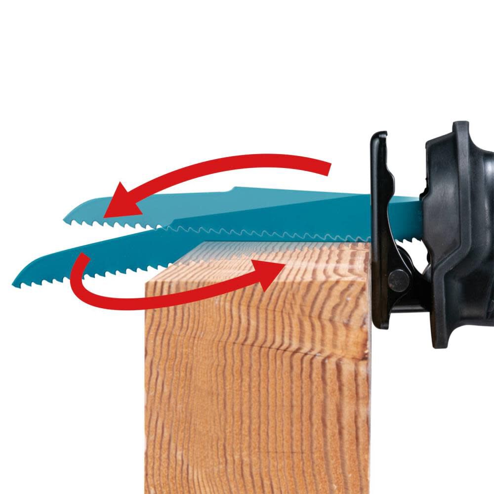 It also features lower vibration with Anti-Vibration Technology (AVTÆ), an internal counterbalance system that significantly reduces vibration, and a refined crank mechanism design engineered to minimize blade deflection and reduce vibration. It features an orbital action setting for more aggressive cuts in wood, and a long 1-1/4Äù stroke length for greater cutting efficiency resulting in faster, deeper cuts.