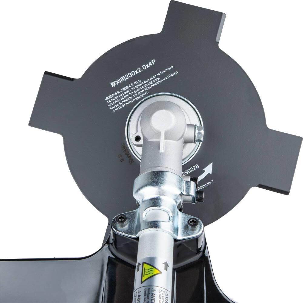 It has a bike-handle design for improved grip and a more ergonomic working position and includes a 9Äù steel four-tooth brush cutter blade for cutting grasses, shrubs, and underwood. The Brush Cutter has a variable speed trigger and three speed settings (4,600 / 5,500 / 7,000 RPM) for power and run time management.