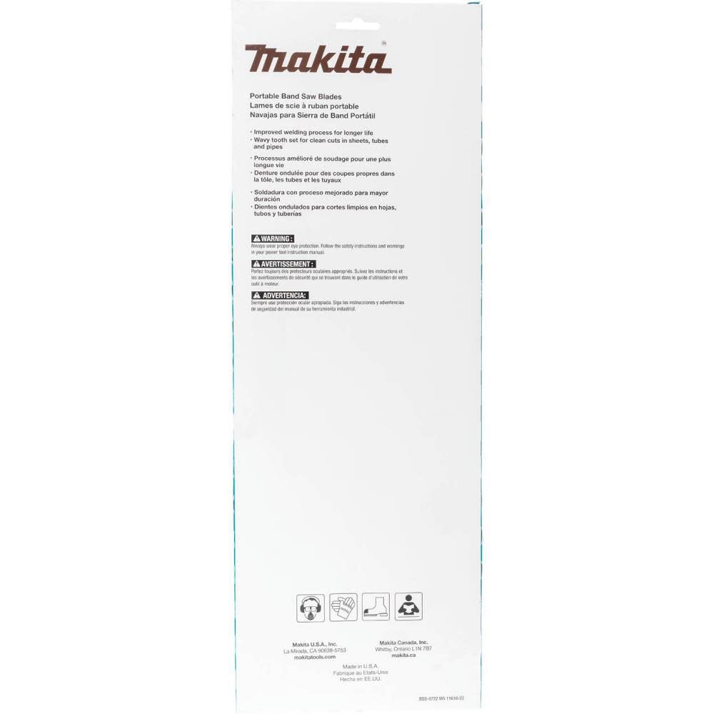 The Makita 44-7/8" 18 TPI Bi-Metal Portable Band Saw Blade (T-05608) is made for use with Makita corded and cordless portable band saws.