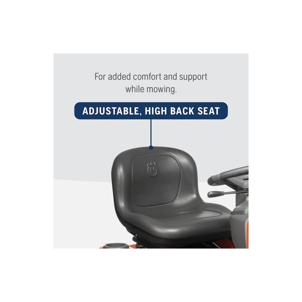 - Adjustable, 15 In. high-back seats; an easy step-through design; and ergonomic steering wheels make these riding mowers comfortable to use
