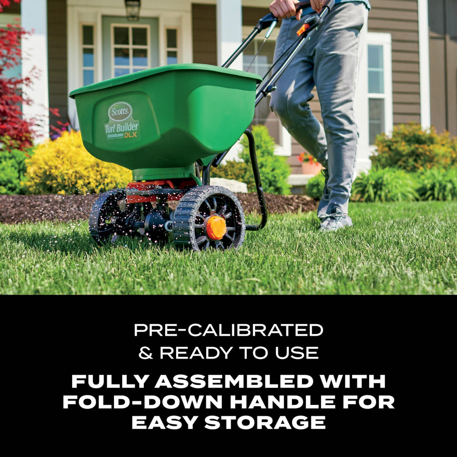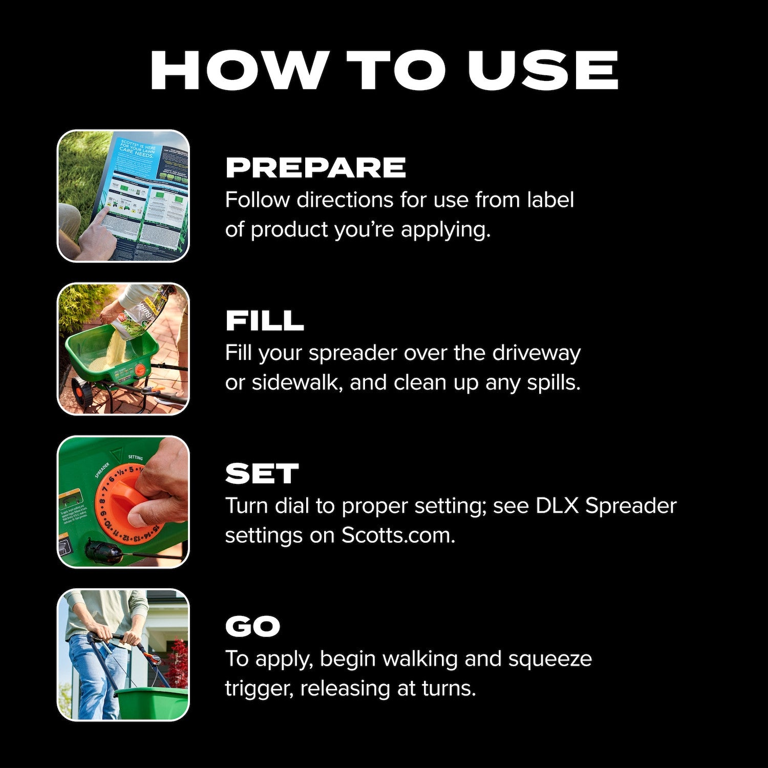 Using the Scotts® Turf Builder® EdgeGuard® DLX Broadcast Spreader is simple.