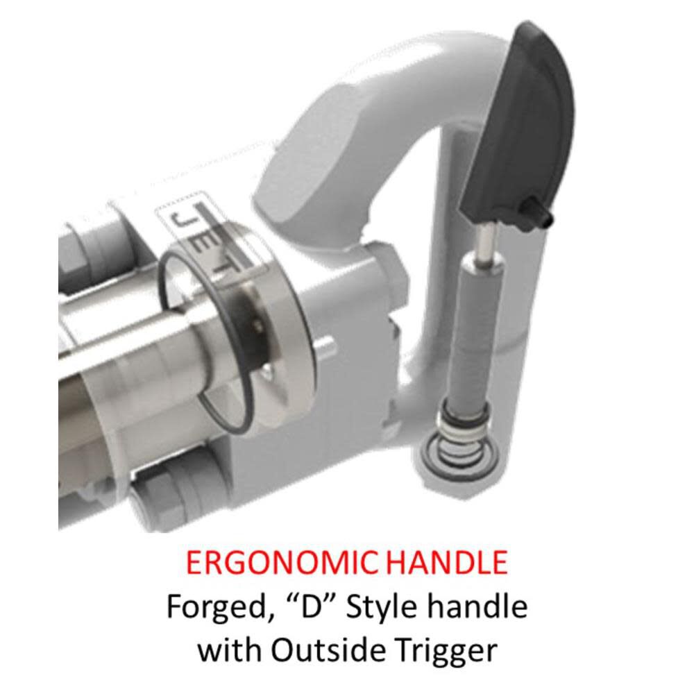 - Ergonomic "D" style forged handle with outside trigger