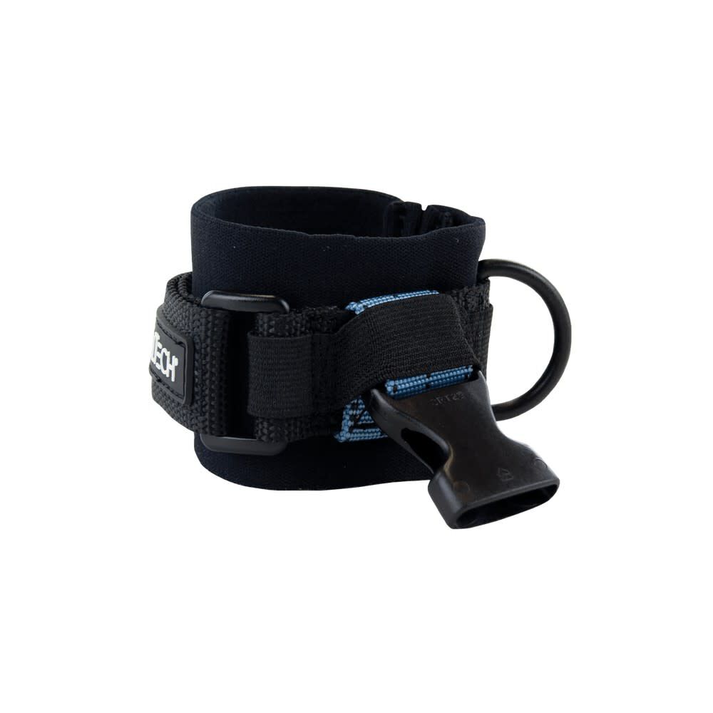 - Neoprene and polyester cuff band and strap, nylon speed-clip, plated steel D-ring