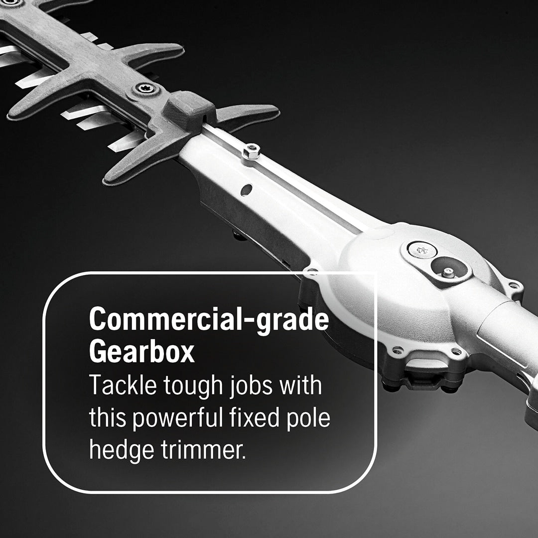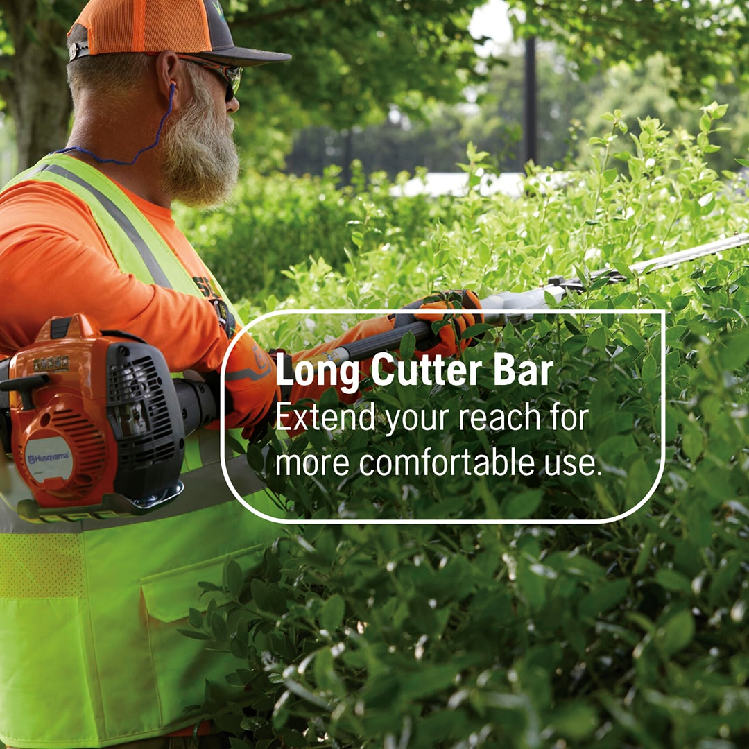 The Husqvarna 525HF3S is a powerful fixed pole hedge trimmer with a 26-inch, double-sided cutter bar on a 32-inch shaft.