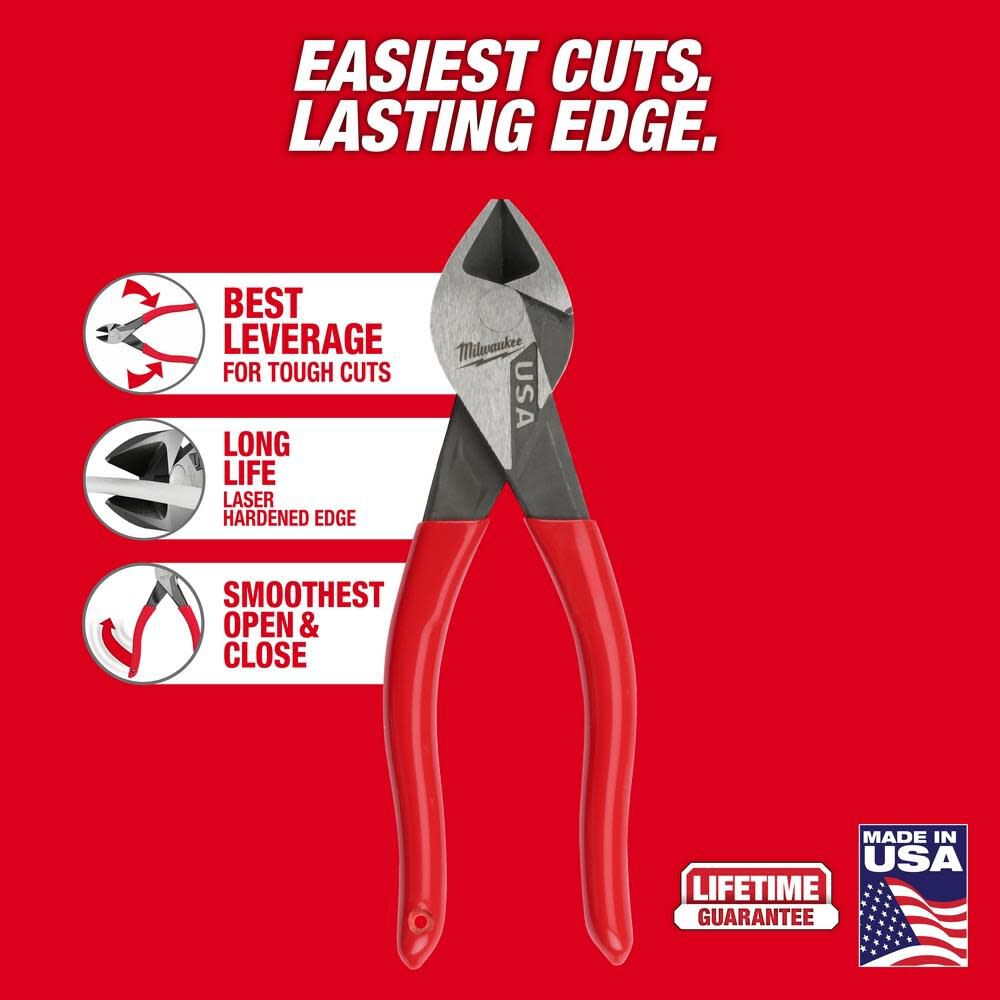 The MilwaukeeÆ 6" Diagonal Cutting Pliers (USA) deliver the easiest cuts and a lasting edge for the professional user.