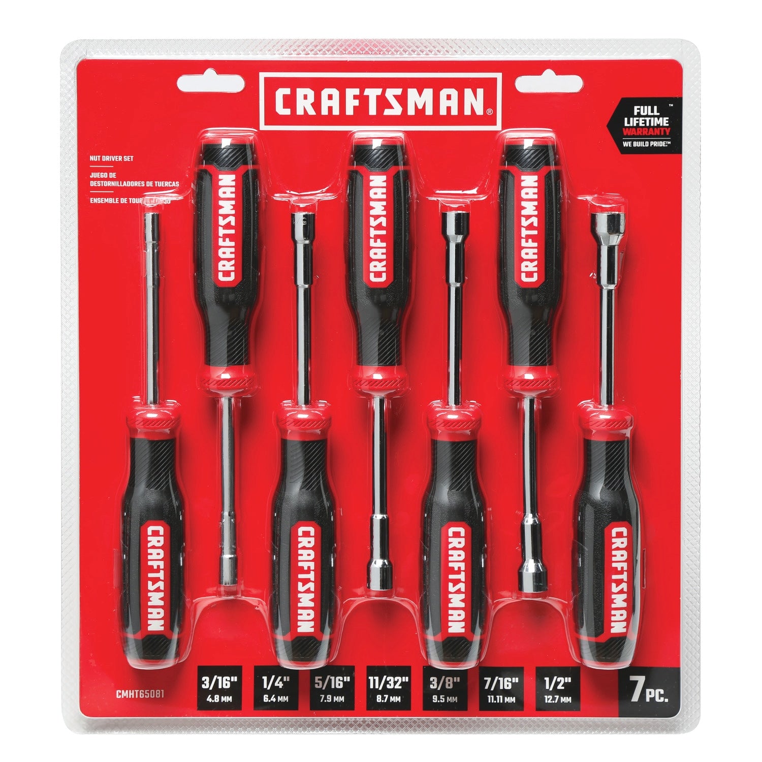 Includes (7) SAE/Metric Nut Drivers (3/16-in-4.5mm, 1/4-in-6mm, 5/16-in-8mm, 11/32-in-9mm, 3/8-in-10mm, 7/16-in-11mm and 1/2-in-13mm)