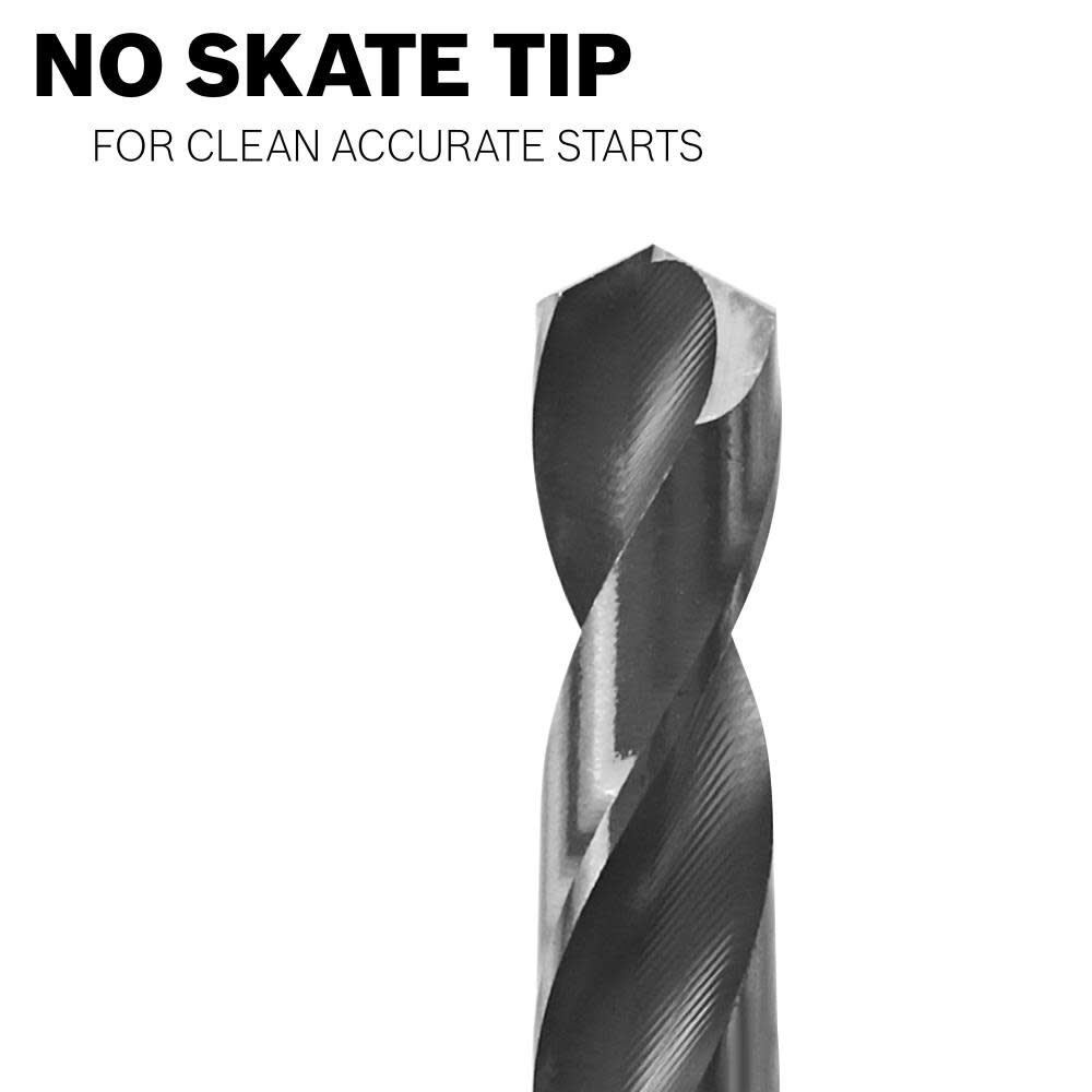 They provide longer life than standard drill bits, thanks to their tip design and black oxide coating.