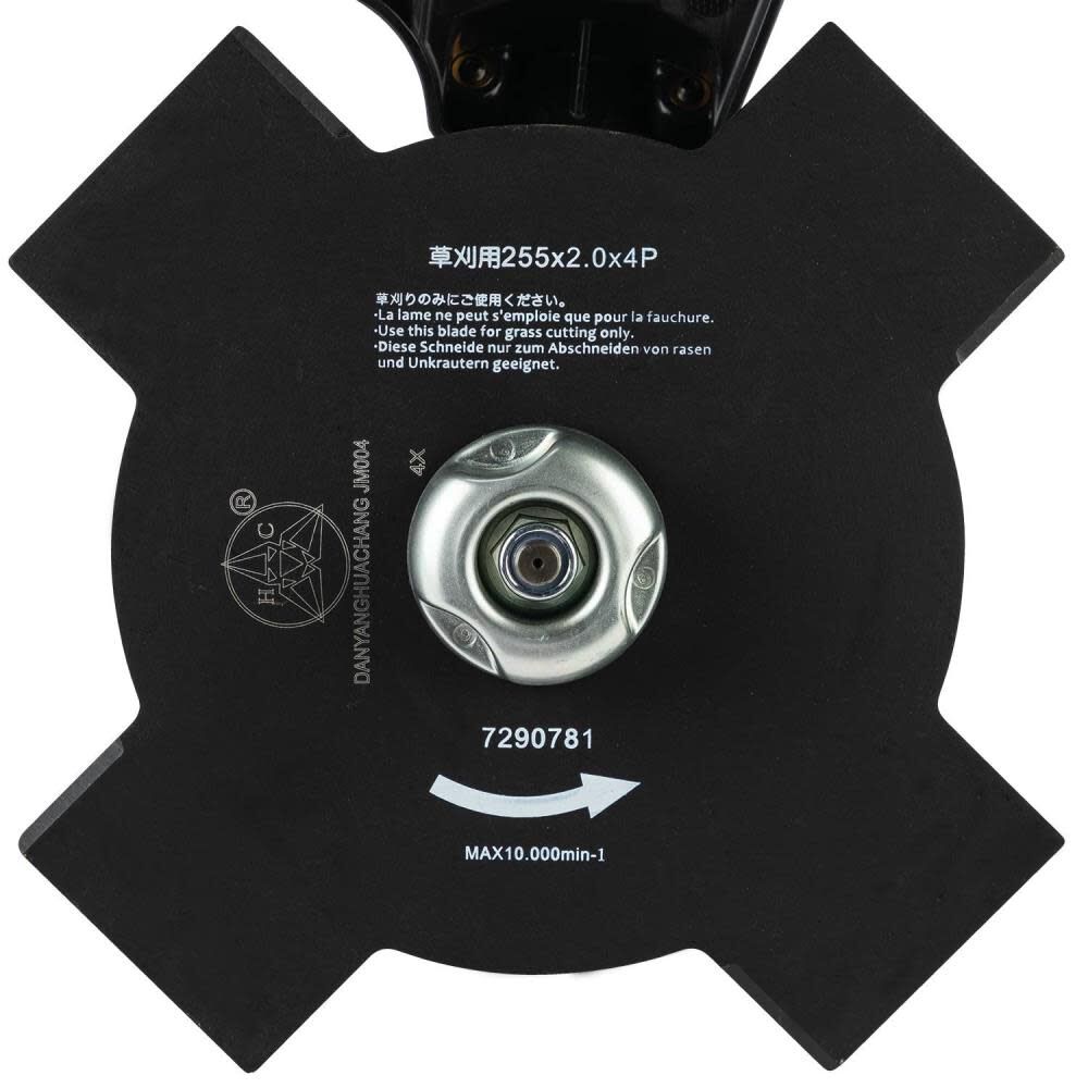 The 10 Inch steel four-tooth brush blade helps in the cutting of grasses, shrubs and underwood.