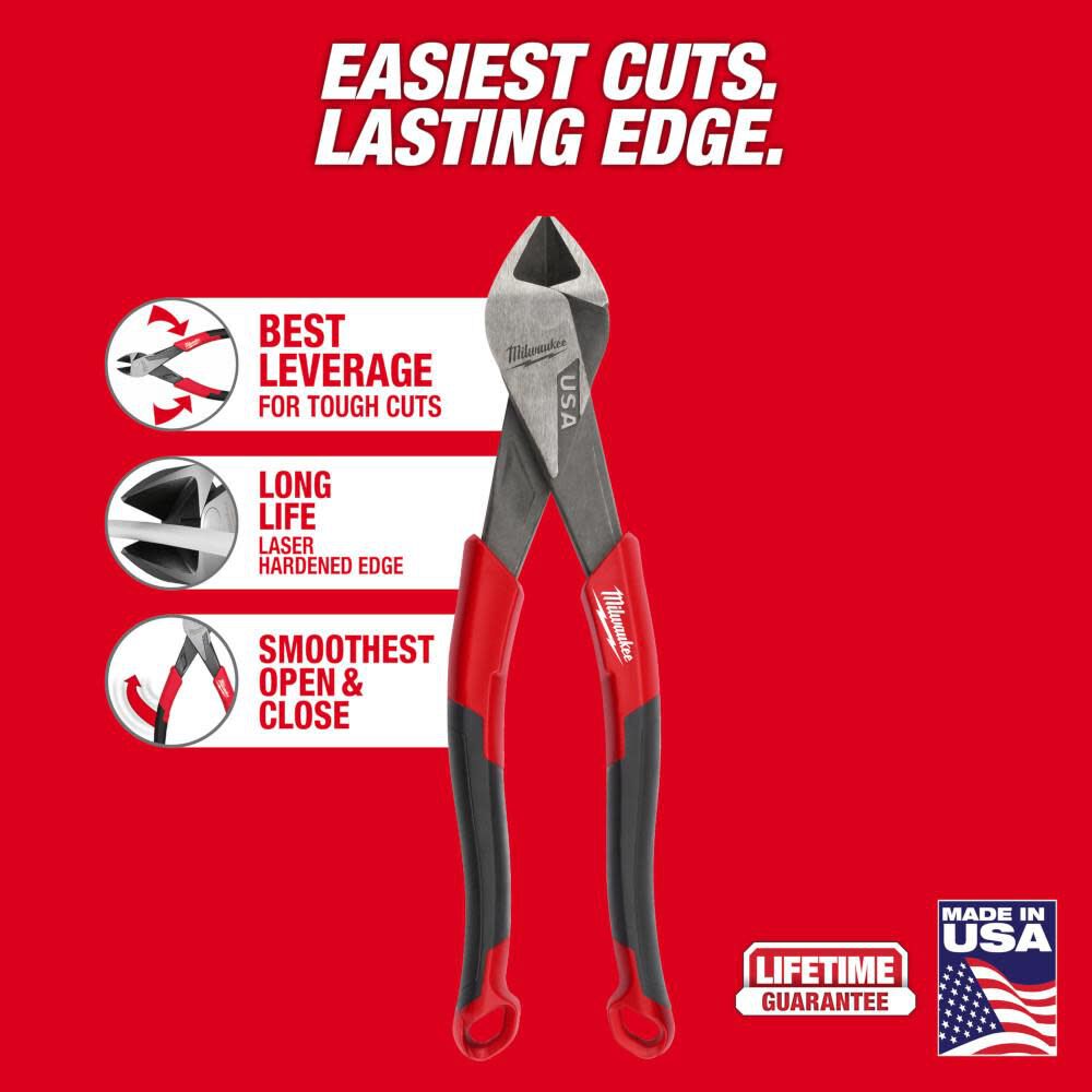 The MilwaukeeÆ 8" Diagonal Cutting Pliers (USA) deliver the easiest cuts and a lasting edge for the professional user.