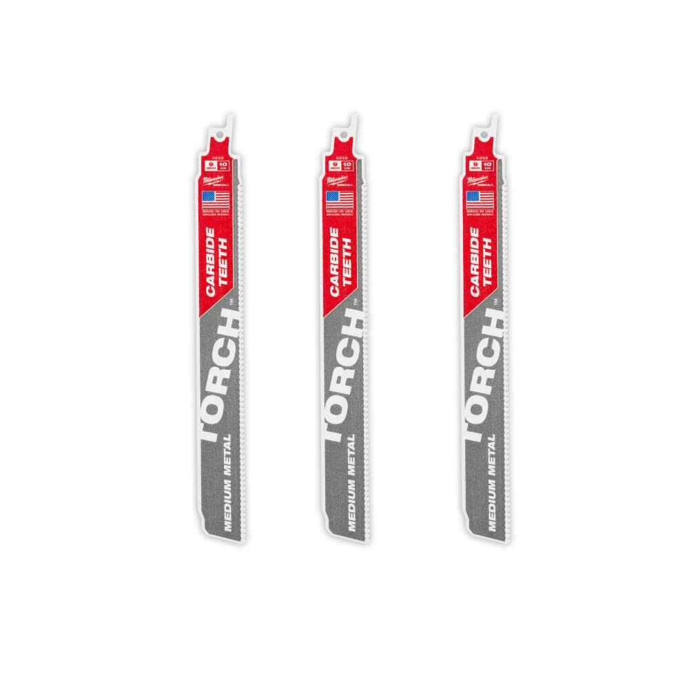 Milwaukee 9 Inch 10TPI TORCH Carbide Teeth Metal Cutting Reciprocating Saw Blade 3pk