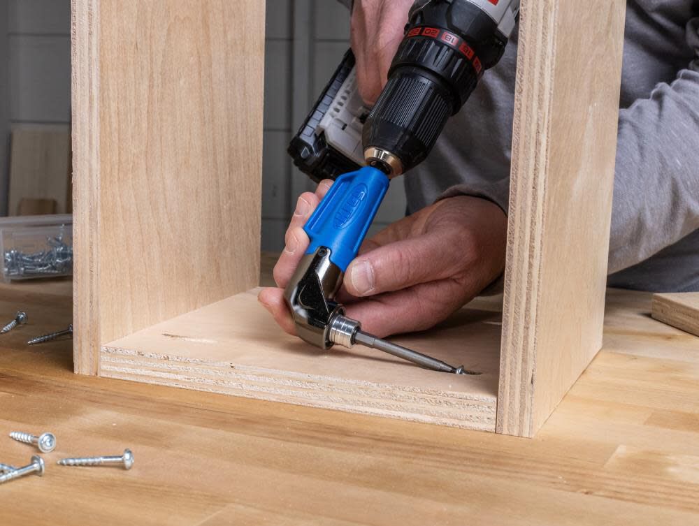 Turn any drill into a 90∞ driver with the Kreg 90∞ Pocket-Hole Driver.