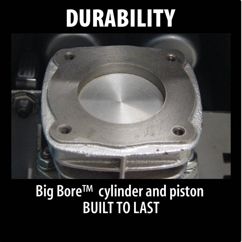 - Wheeled air compressor's Big Bore piston and cylinder provide faster air recovery time for peak performance