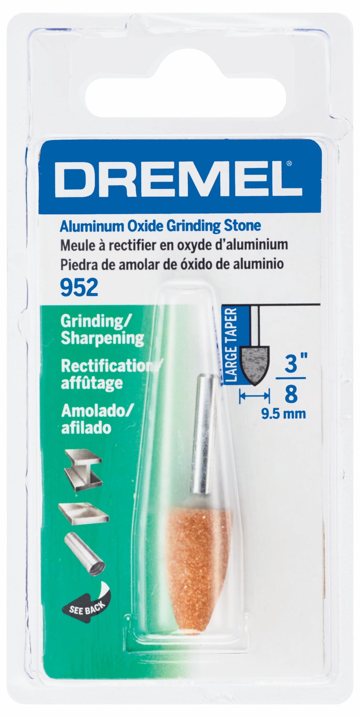 Dremel offers a variety of grinding stones with different bit shapes to support virtually every possible grinding application, the 952 accessory features a large tapered shape.
