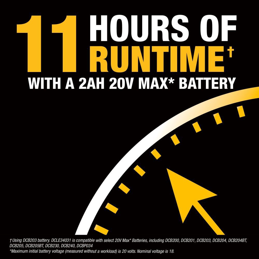 - 11 hours of operation w/ 2AH battery - Not Included