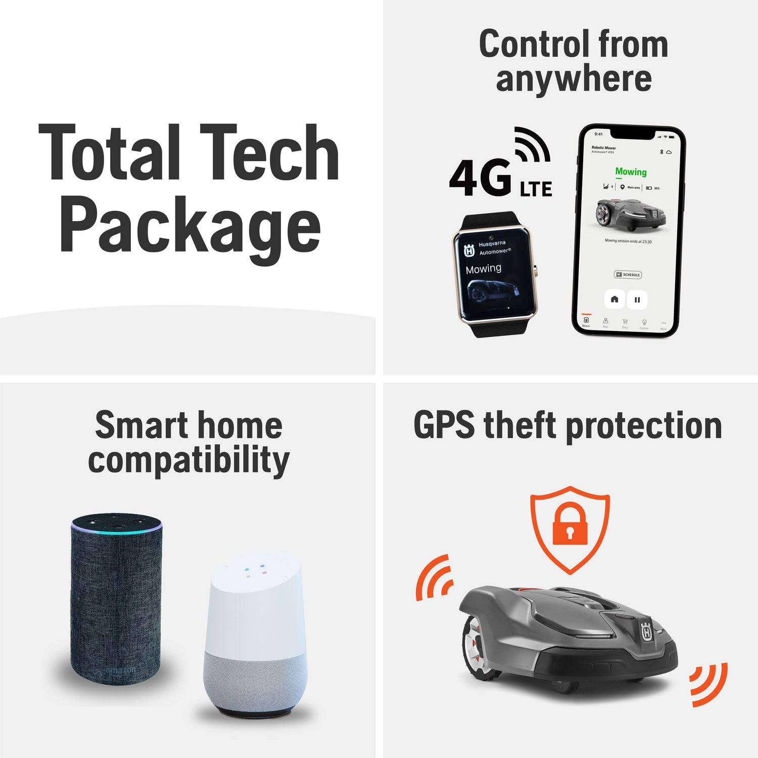 Seamless connectivity allows you to control the electric lawn mower from Amazon Alexa, Google Home or your smartphone with the Automower Connect app.